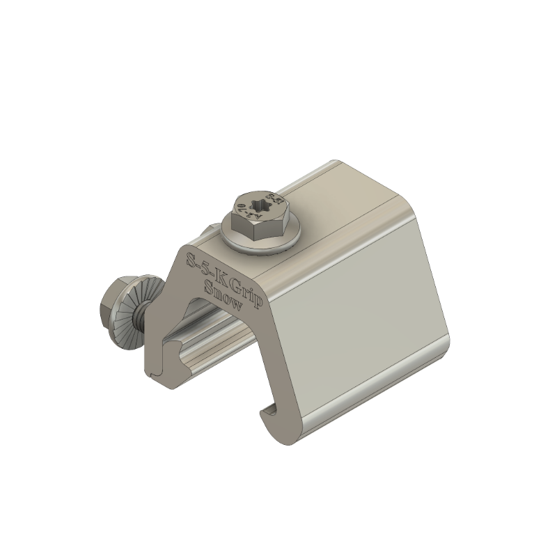 El S-5-K Grip Snow ("K" significa Klip-Rib®) tiene un orificio para perno de montaje para facilitar el uso del S-5-VersaClip para la conexión de los sistemas ColorGard. Dos insertos diferentes (se venden por separado) compensan las dimensiones exactas de las costillas.