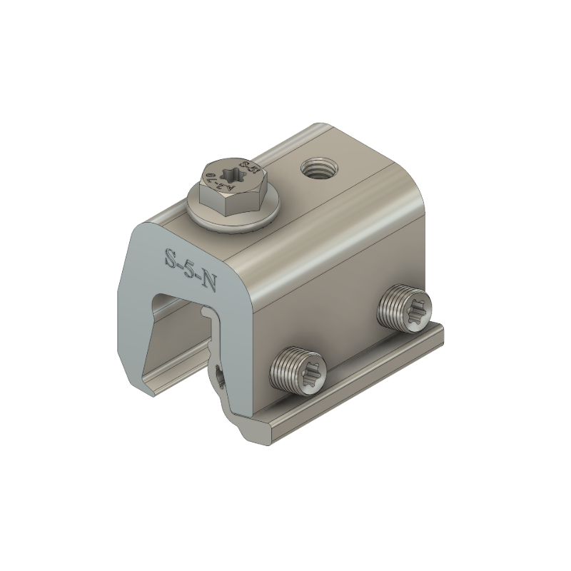 La S-5-N ("N" por Nail Flange o tira de clavos) es una abrazadera sin penetración para techos metálicos junta alzada (SSMR).