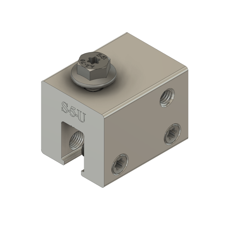 El S-5-U (“U" significa Universal) es una abrazadera de techo popular y versátil techo. Sus generosas dimensiones se adaptan a a la mayoría de los perfiles de junta alzada de América del Norte y del Sur, incluyendo la mayoría de los perfiles estructurales y arquitectónicos.-incluyendo la mayoría de los perfiles estructurales y arquitectónicos.